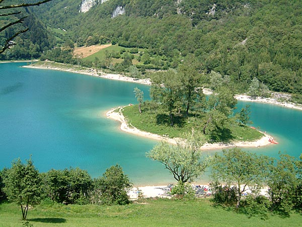 Ausflug an den Lago di Tenno, einem kleinen Badesee, dessen einmalige Farbe uns alle faszinierte. Dieses Gewässer ist uns bereits auf der letzten Etappe unserer Transalp ins Auge gefallen.