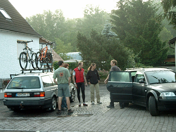 Auf geht's - in Bayerisch-Zell angekommen, freuten wir uns auf die ersten Kilometer. Hier auf dem Parkplatz am Tennisplatz startete unsere Transalp 2006.