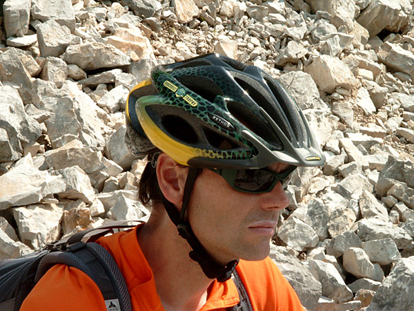 Kurz vor der letzten längeren Abfahrt unserer Transalp. Diese alte Passstraße wurde an einer senkrechten Felswand gebaut. Der Talblick (siehe nächstes Bild) war wirklich beeindruckend.