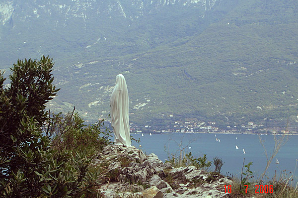 Diese Statue wacht auf einem Felsvorsprung über den Ort Campione.